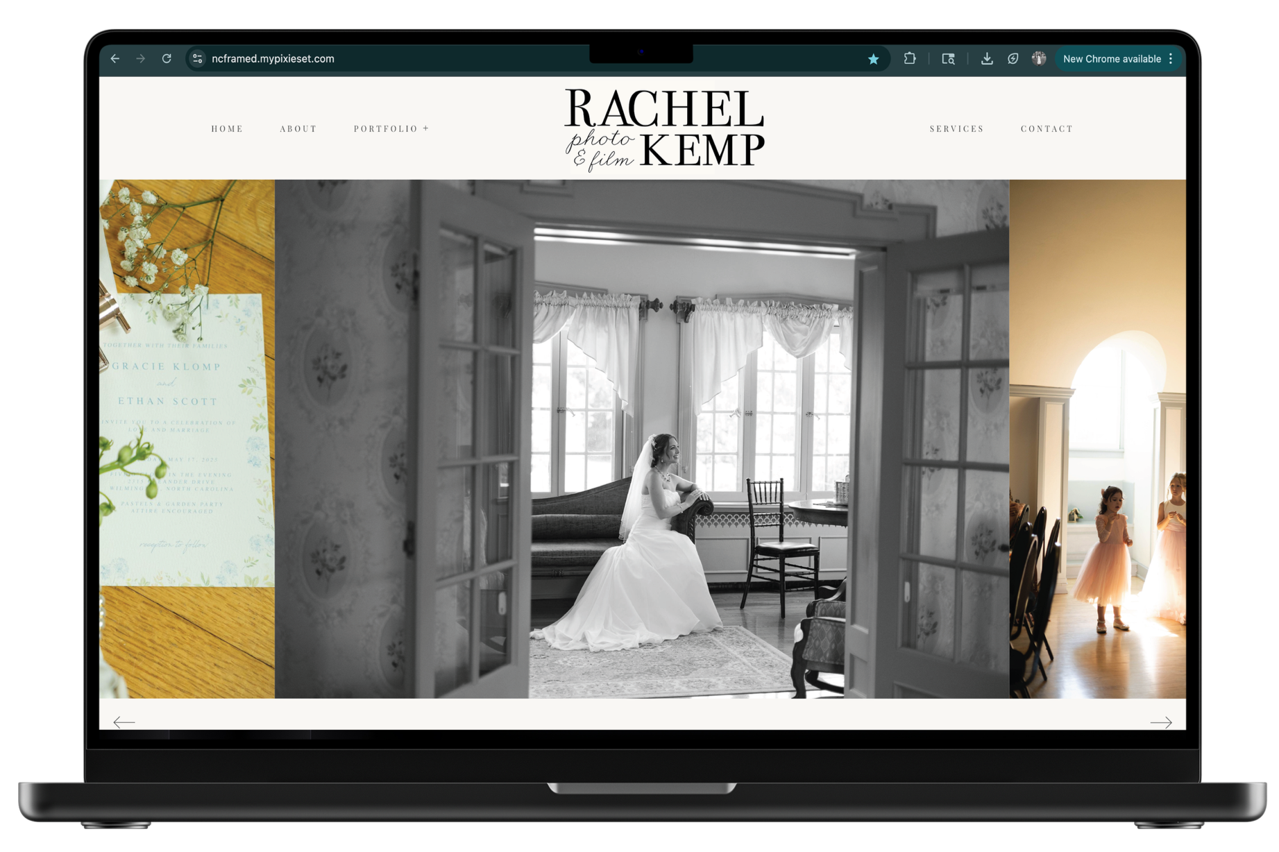 Authentic imagery from my wedding portfolio, paired with bold typography, emphasizes the excitement of a wedding day. These eye catching elements paired with a simple one-column structure and full-bleed layout allow clients to fully envision my work alongside a clear and efficient description of the process.