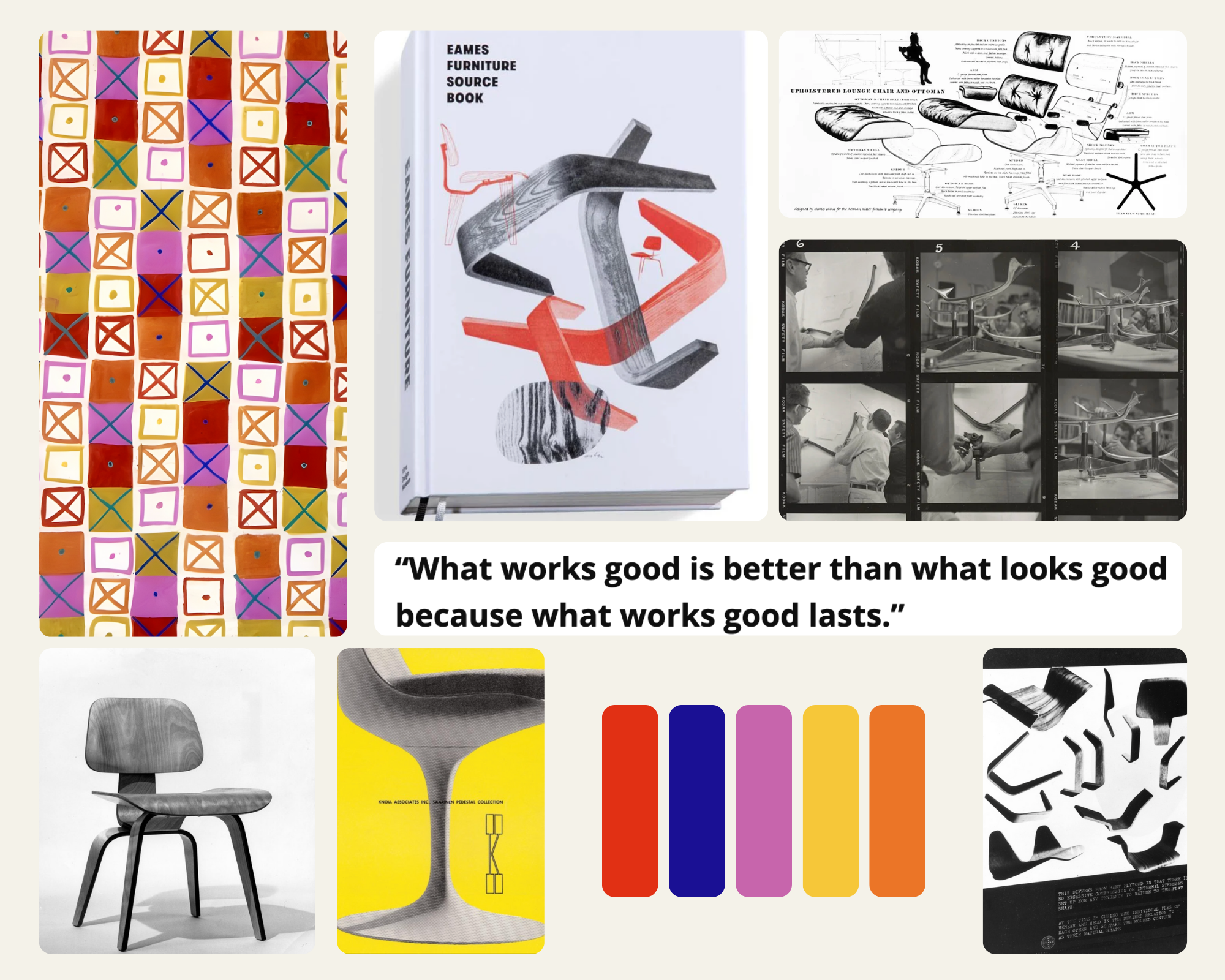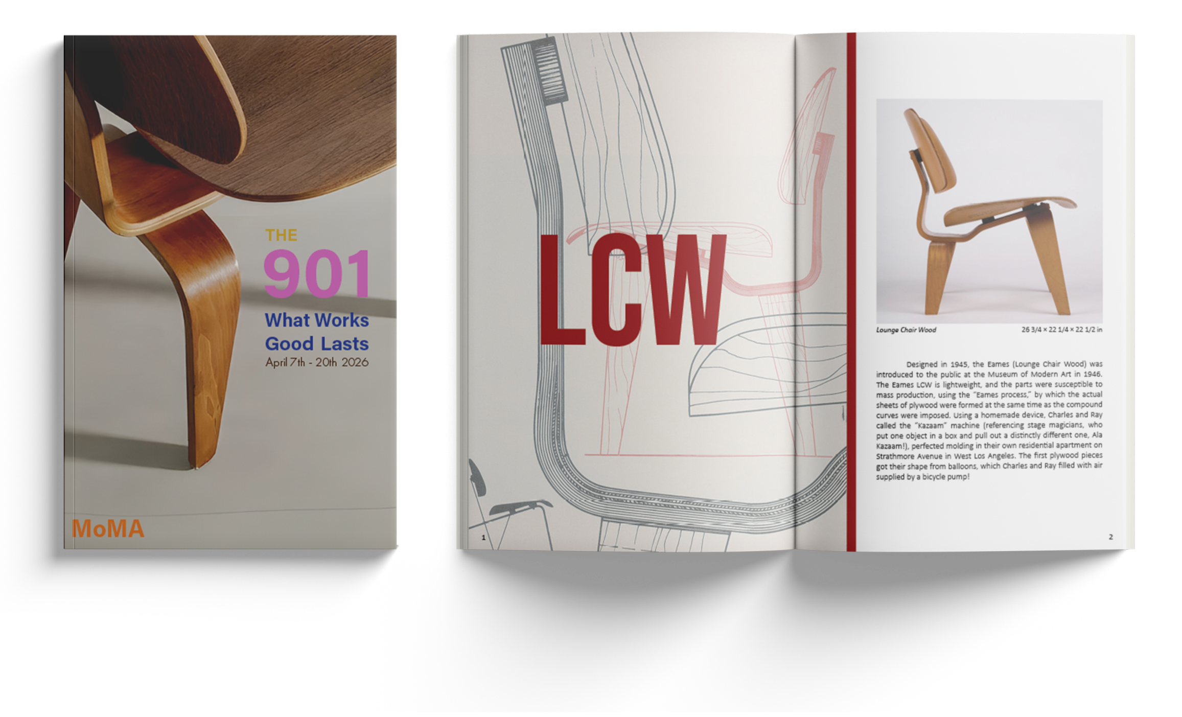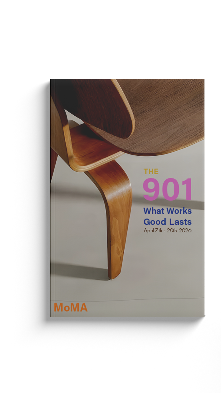 Designed to guide visitors through the MoMA exhibition, The 901 brochure showcases the furniture designs of Charles and Ray Eames— integrating Ray’s textile design and concept sketches on each page.